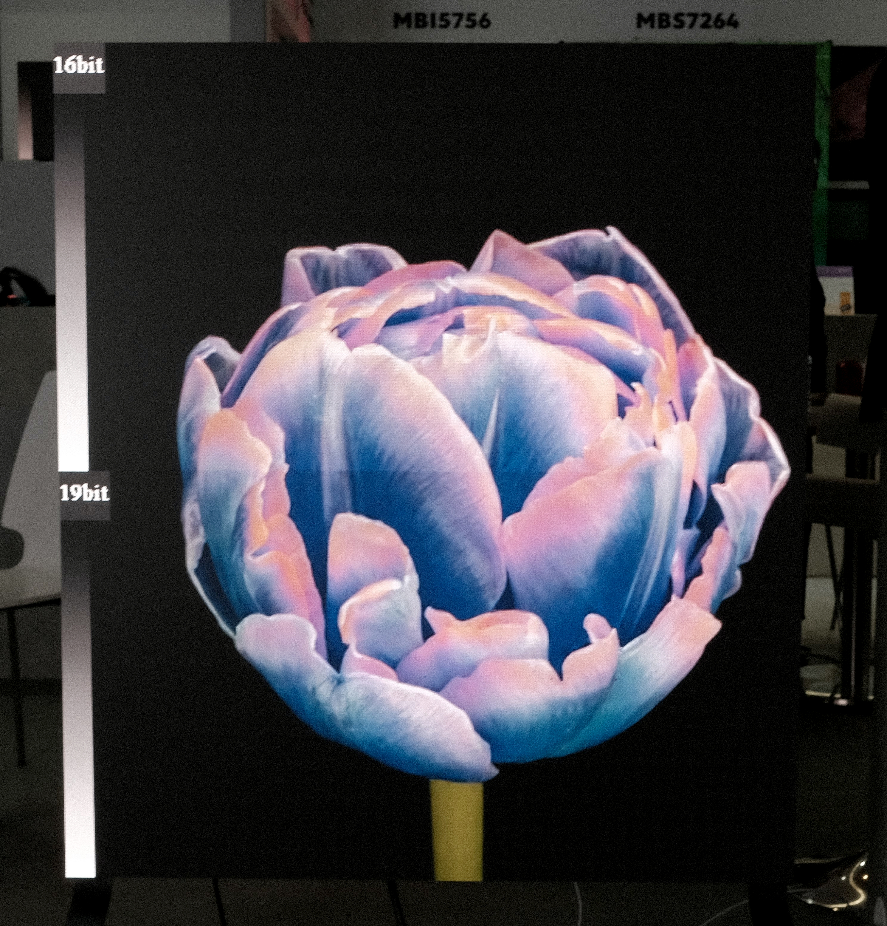 图2. MBI5292拥有PAM+PWM技术的19-bit灰阶(下),使调降亮度时亦不会拍摄到掉灰并减少低灰色偏问题(展品由维视商显提供)